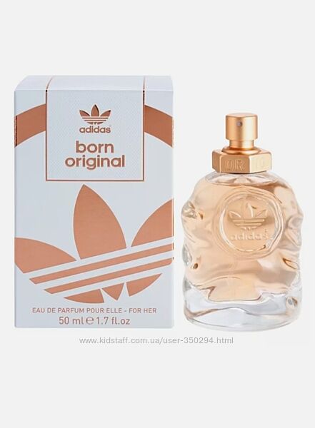 Born Original for Her - яскраві, бентежні та водночас енергійні й стильні жіночі квітково-фруктові парфуми, випущені 2015 року популярним спортивним брендом Adidas у рамках ароматичного дуету для неї та для нього. Аромат з назвою «Народжений оригінальним» поміщений у дуже незвичайний асиметричний абрикосового кольору флакон, форма якого, можливо, у кожного матиме свої унікальні асоціації.Ароматична композиція випромінює неймовірну енергію, дарує заряд бадьорості та позитивних емоцій. Верхні ноти наповнені бентежним коктейлем із соковитих відтінків абрикоса, апельсина й освіжального бергамота. Сердечні акорди зіткані зі стиглого червоного яблука, млосного запаху кокоса і п´янких нот терпкувато-медового жасмину. А завершує композицію ароматичний шлейф із солодкувато-пряних бобів тонка, елегантного хвойно-вершкового запаху білого кедра та тонкої прянощі деревини оливкового дерева.