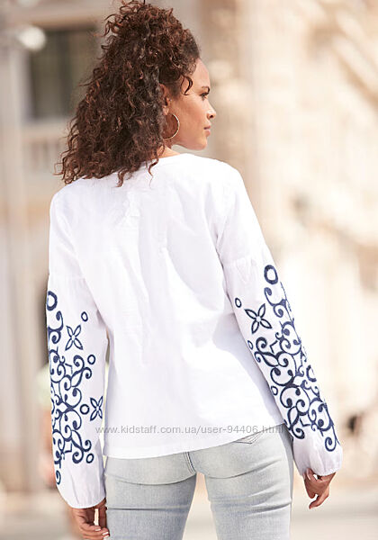 Натуральная льняная рубашка с вышивкой Lascana размер 38 Рубашка из воздушной льняной с хлопком и вискозой ткани. --- плечи 39 пог 50 длина 63 рукав 65
