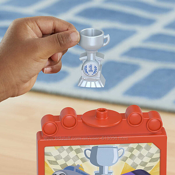 У комплекті: 2 металеві паровози, трофей Кубок Содору, елементи залізниці.