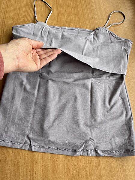 Колір більш до сірого. Є підкладка під груди. Лямки тягнуться ( з пласкої резинки).