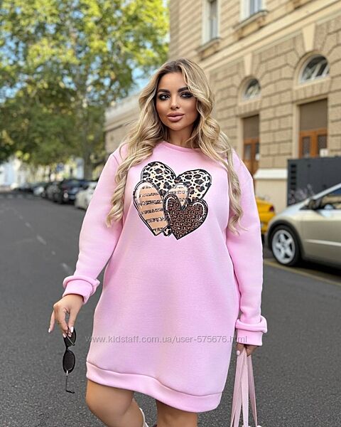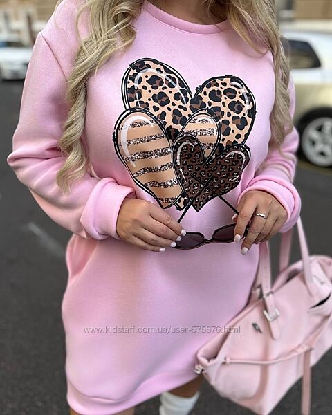 Подробное описание: 48-52, 54-58 Сукня -туніка з накатом сердечки лео тринитка з начісом