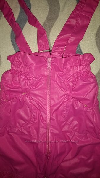 Полукомбез -длина шлеек регулируется липучками, внутри х/б подкладка + тонкий слой утеплителя. Низ штанин регулируется кулисками.