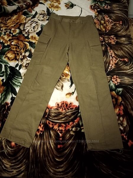 по-пластунски. Брюки прямого кроя, типа карго, сбоку на бедрах по