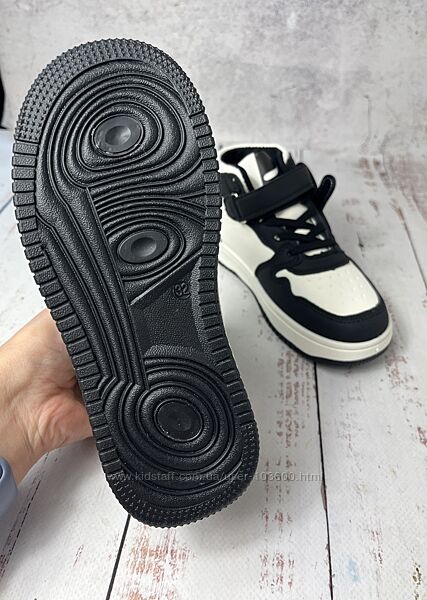 Завишена моделька на шнурівках-гумках, які добре фіксують і закривають гомілковостопний суглоб та зі зручною липучкою