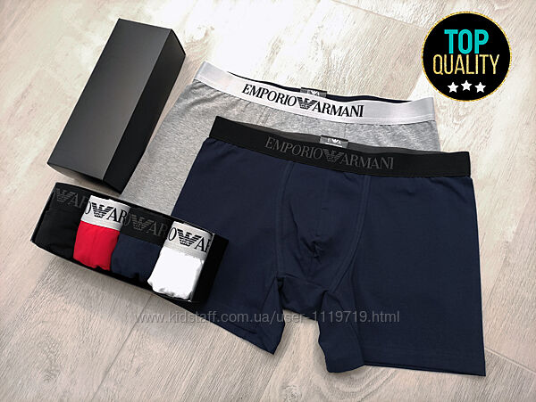 Подробное описание: Набір чоловічих боксерів 3-5 шт. Emporio Armani в коробці. Подовжена модель