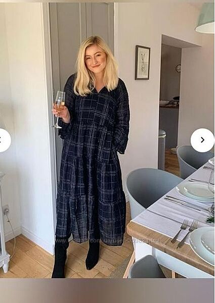 пропоную вам чудове повітряне, лляне плаття, сукню в карту, міді від люксового бренда Jigsaw. Дуже дорогий бренд, перша ціна 165 фунтів, наскріні, чудова якість, вона невагома, з чохлом, оскільки прозора, у