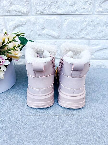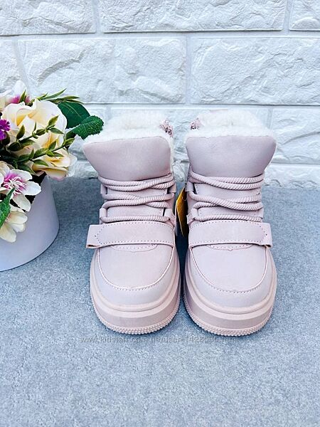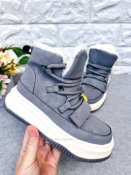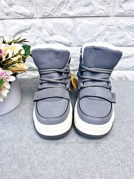 К.1867Стильні зимові черевички від Clibee, верх еко-шкіра, в середині набивна овчина, регулюються шнурівками та замочком, дуже гарно виглядають на ніжці, колір сірий і рожевий.