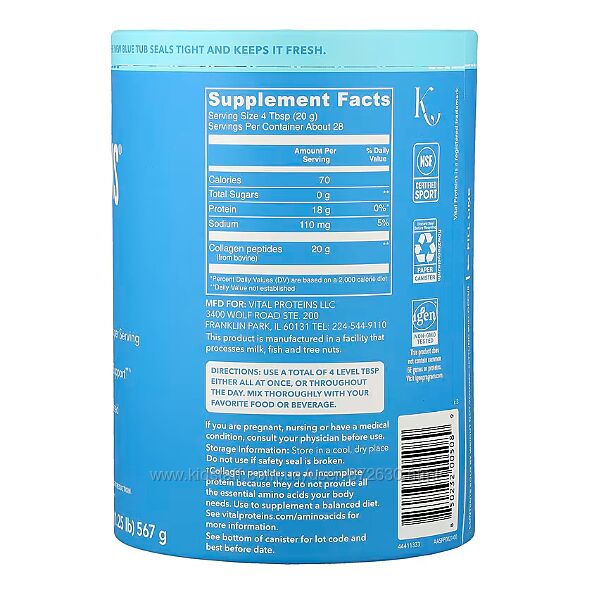 Подробное описание: Vital Proteins пептиди колагену з нейтральним смаком
