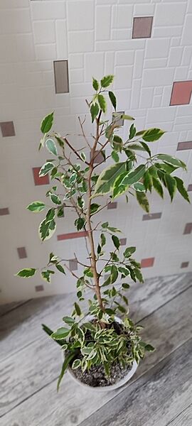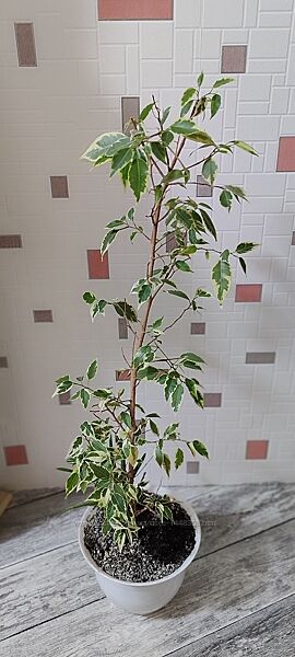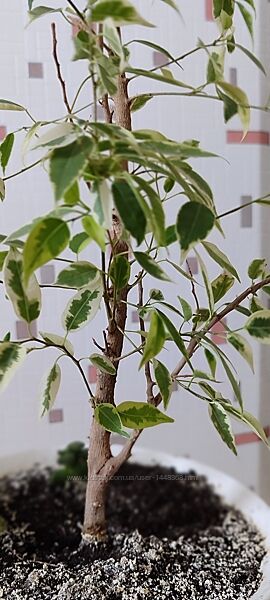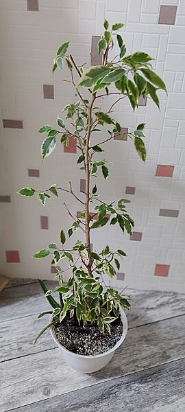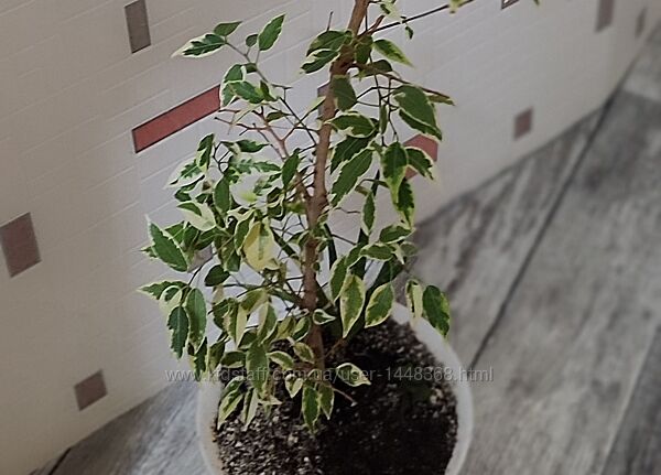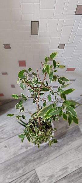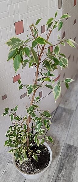 Фикус с бело-зелёными листиками. Не прихотливое комнатное растение. Хороший вариант для офиса или дома. Высота всего растения от низа до верха 90 см. Ответах горшка до верха листиков 70 см. Возможна отправка в другой город. На фото продаваемый цветок. Отправка и продажа без горшка.Другие объявления продавца