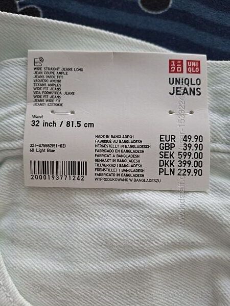 Джинси чоловічі бренду Uniqlo, світло-голубого кольору (майже білі), розмір 32, нові, 100 % хлопок. Довжина 111 см, талія 43 см, посадка 31,5 см, бедра 57 см, ширина внизу штаніни 23 см.Другие объявления продавца