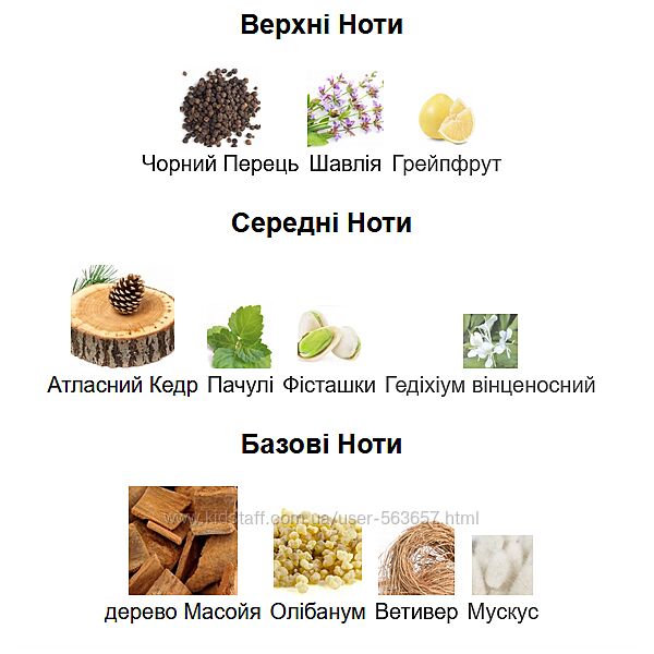 Верхні ноти: Чорний Перець, Шавлія і Грейпфрут;