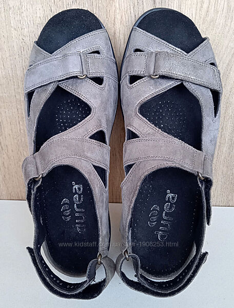 Подробное описание: Повністю натуральні босоніжки на липучках, жіночі сандалі сірі з чорним, 37