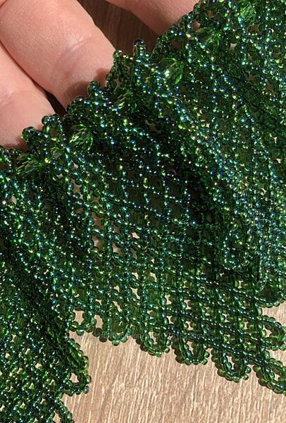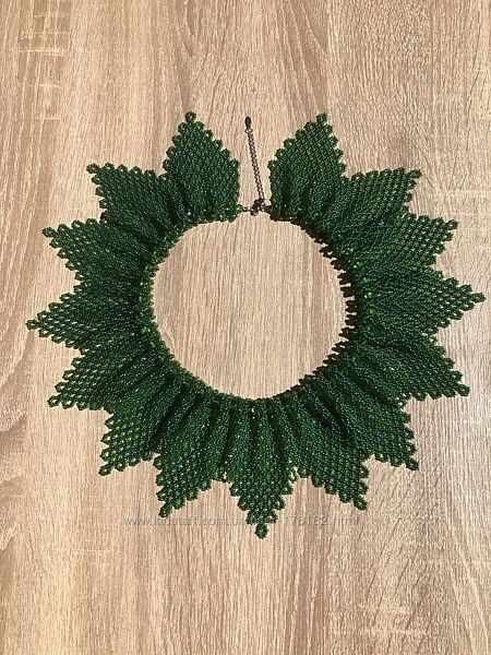 Намисто з бісеру. Зелений райдужний колір. Подовжуючий ланцюжокПредложения Premium магазинов