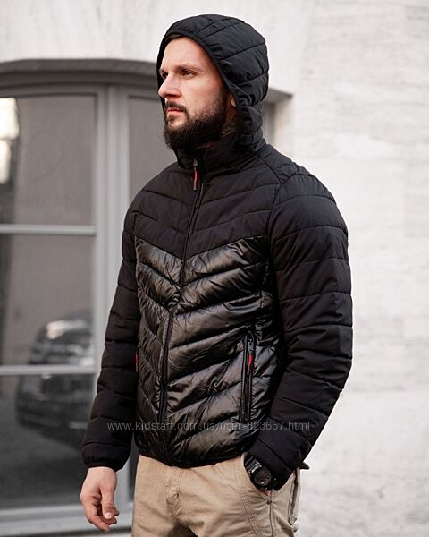 Подробное описание: Чорна та сіра чоловіча демісезонна куртка осіння