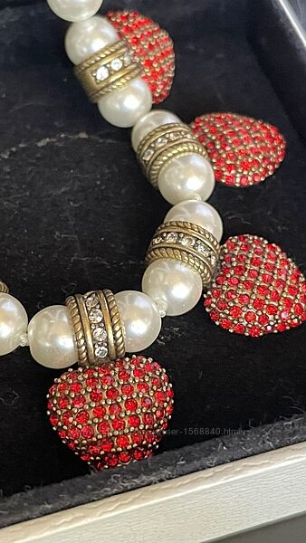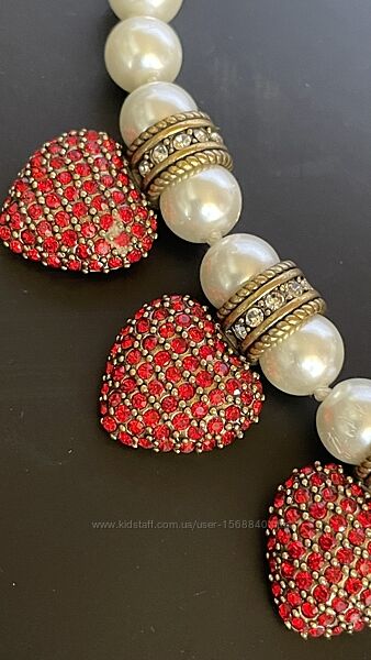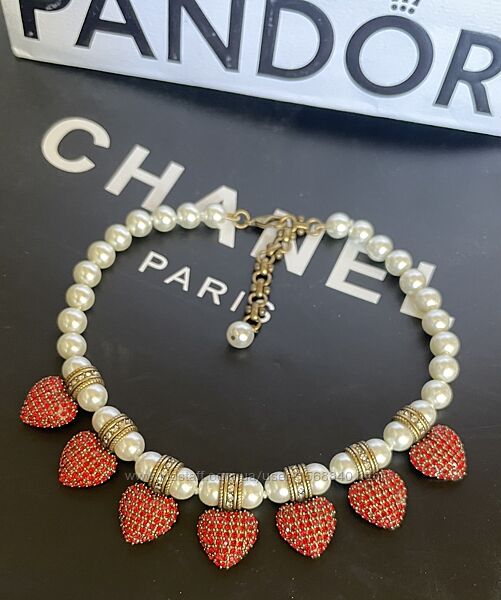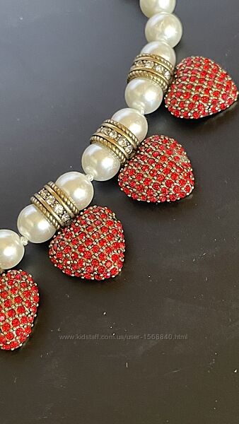 Стрази, кольє, прикраса жіноча, ланцюжок, перлини, червоні сердечки, діор, жадор, люкс, перша лінія.