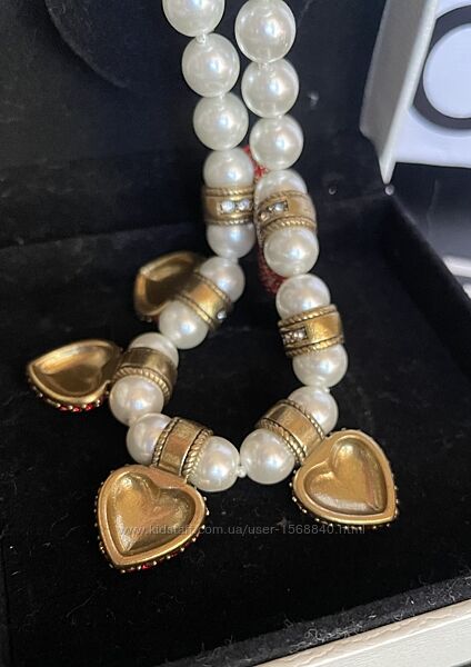 Подробное описание: Елегантне кольє в стилі Dior з перлинами і підвісами-серцями