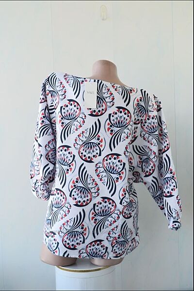 Лляна блуза Marks & Spencer, 55% льон, 45% бавовна. Легка, приємна, не тягнеться, зверніть увагу на замір на талії, вам потрібно, щоб унього пройшли груди) На бирці 16 розмір. на нього і йде