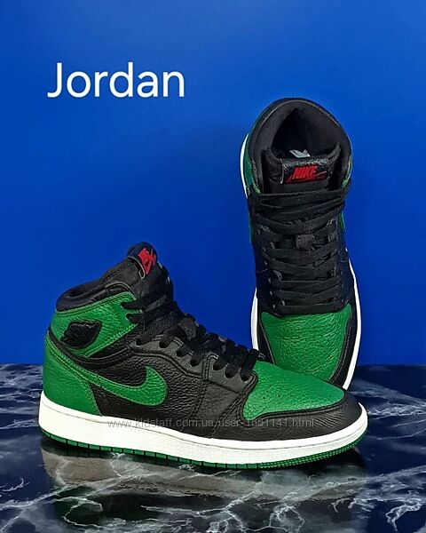 Кожаные кроссовки Nike Air Jordan 1 Retro High OG Pine Green Black White