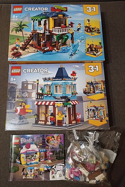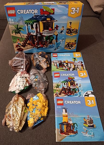 Все наборы покупались новыми, после одного ребенка.1. Lego Creator 3в1 "Пляжный домик серферов" (31118). Количество деталей: 564.