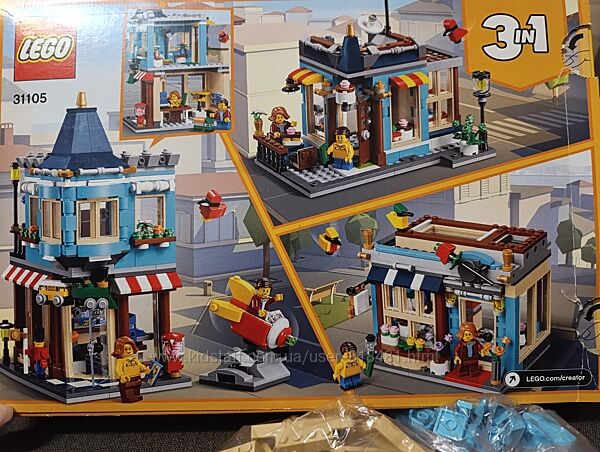 2. Lego Creator 3в1 "Городской магазин игрушек" (31105). Количество деталей: 554.
