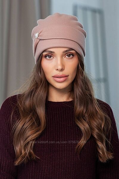 Подробное описание: Шапка з кашеміру підклад фліс брош зйомна