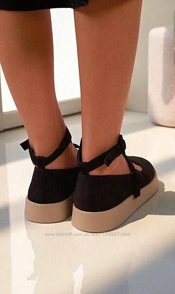 Подробное описание: Жіночі туфлі чорного кольору з замші на світлій платформі