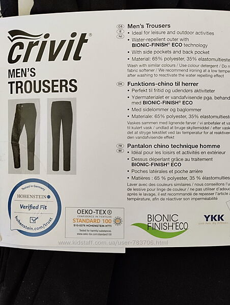 Подробное описание: Водо- и грязеотталкивающая ткань брюки crivit германия