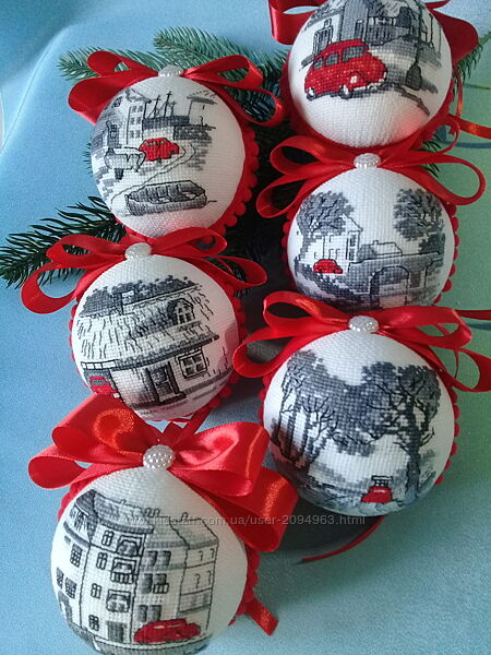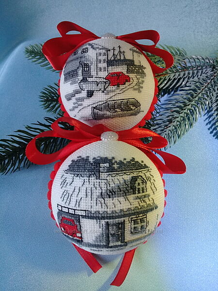 Іграшки вишиті ручної роботи тематичні. Діаметр 8см, основа пінопласт, вишивка одностороння, інша сторона атласна. Мають підвіски. Ціна вказана за набір Прересилаю поштою. Дивіться інші мої оголошенняДругие объявления продавца