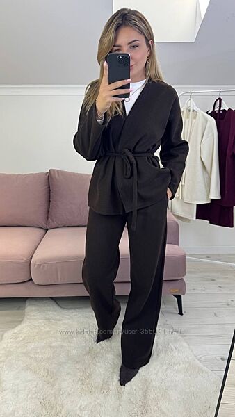 Костюм штани вільного крою, талія на резинці, з карманами. Кофта на запах, вільного крою, рукав вільний