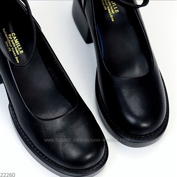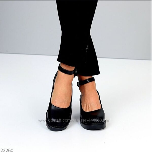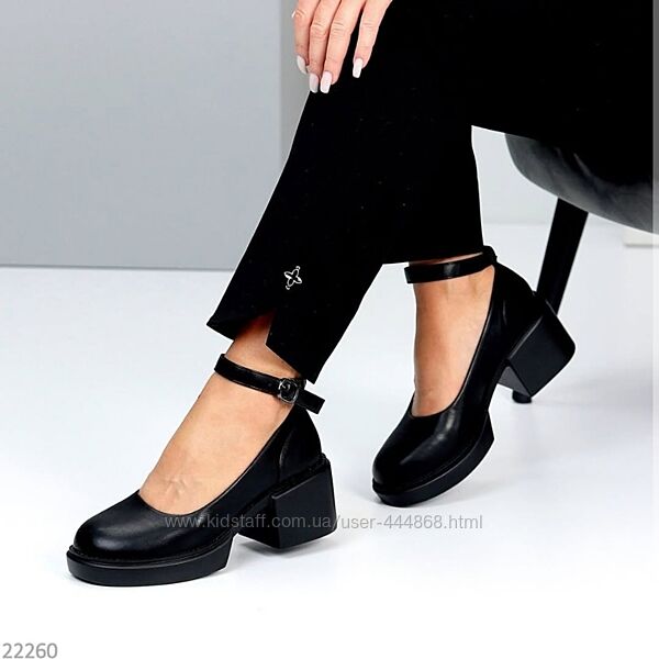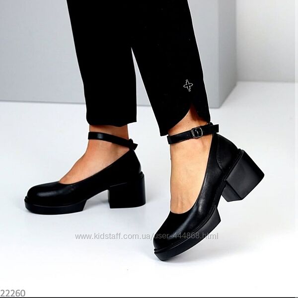 Подробное описание: Стильні трендові жіночі туфлі Мері Джейн чорні шкіряні на підборах