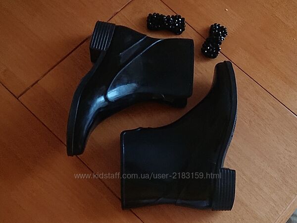 Подробное описание: елегантні чорні гумові чобітки з бантиками, бантики знімаються