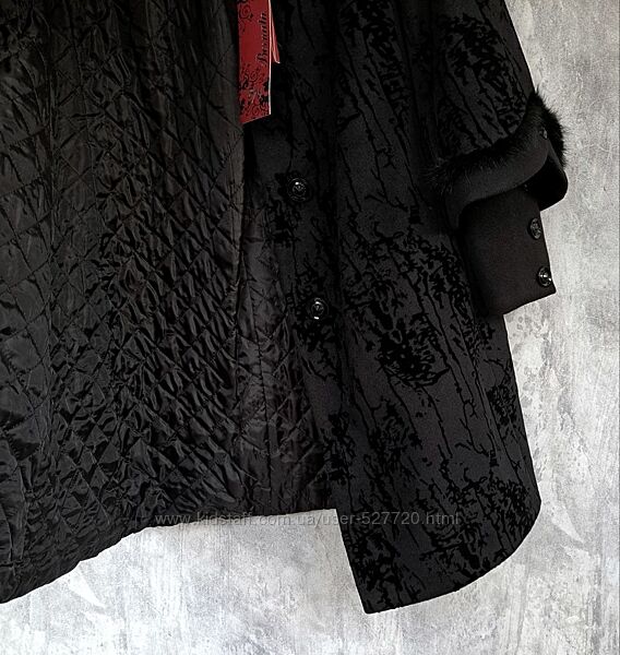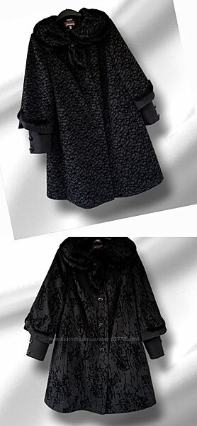 наявність уточнюйте будь ласкаЖіноче зимове пальто в опуклий принт абстракція(56р.) та квітковий опуклий принт(62р.). Модель силуету трапеція, застібається на гудзики, зверху додатково фіксується пришивними кнопками. Відкладний комір, є прорізні бічні кишені, рукава та спереду воротник декоровано тасьмою з натуральної норки.