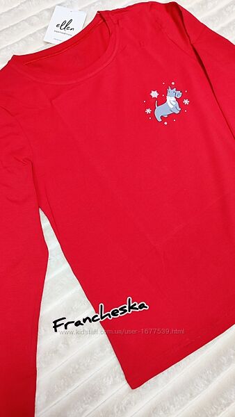 👕 Лонгслів насиченого червоного кольору з милим принтом сніжинок та песика.