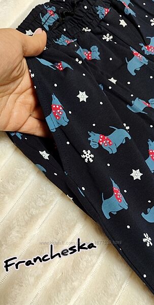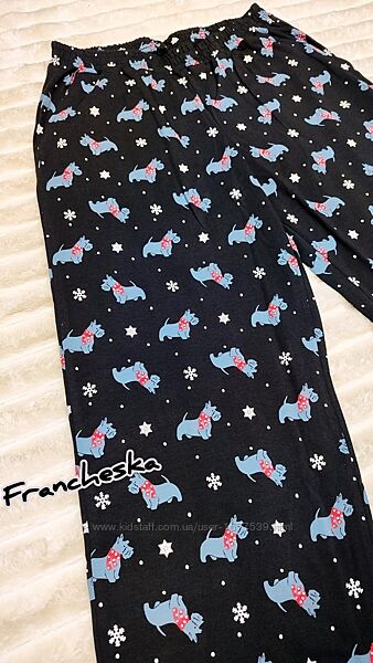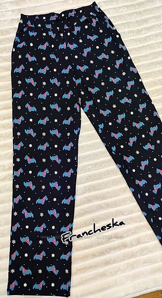 👖 Брюки прямого крою на резинці з цікавим малюнком собачок сірого кольору з червоними шарфами. .