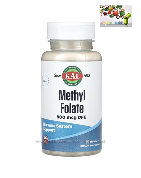 Подробное описание: Фолиевая кислота , KAL, В9 , Methyl folate , Метилфолат, 400 / 800 мкг DFE