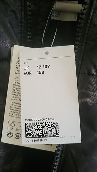 Нова куртка Н&М на хлопчика 12-13 років, думаю, що великомірить. Демі, досить товста, до 0 градусів можна спокійно носити. Заміри підмишки 55см, спинка довжина 66см, рукав від плеча 64 см Капюшон на липучках відстібається. Внизу є утяжка. 900грДругие объявления продавца