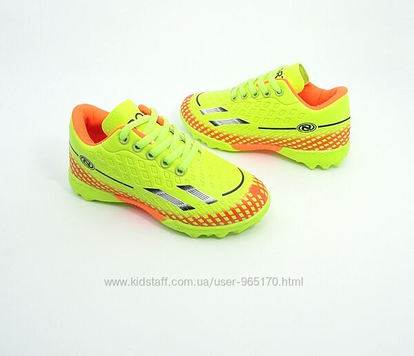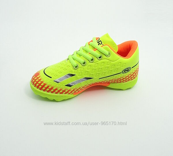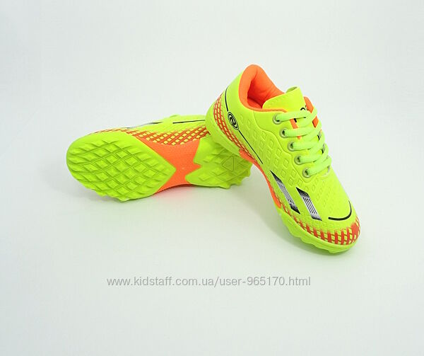 Дитячі сороконіжки стоноги взуття для футболу, для гри на штучних і природніх твердих покриттях. Верх моделі - штучна шкіра, підошва з міцної гумової суміші, носок прошитий. Спеціальне розташування шипів значно підвищує стійкість під час гри, забезпечує відмінне зчеплення навіть з вологими поверхнями, максимально розподіляє навантаження на стопу.