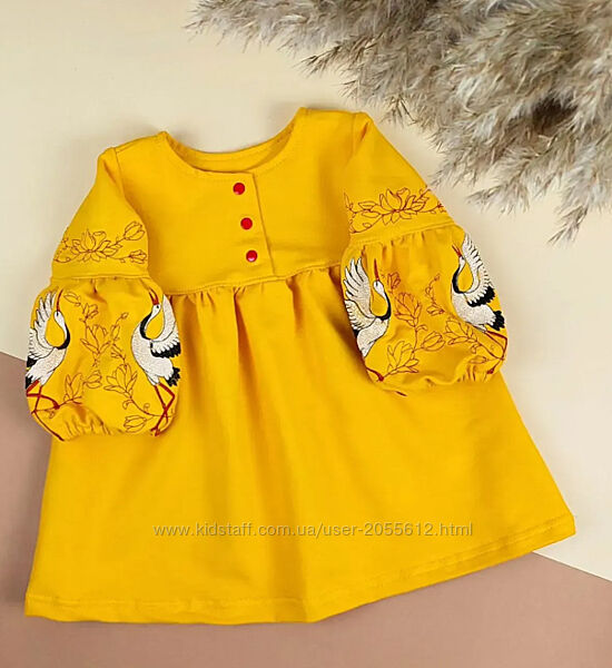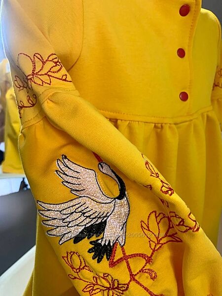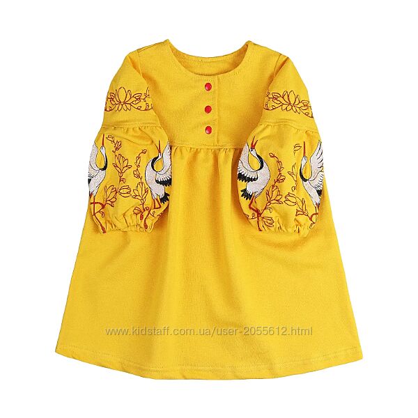 Подробное описание: Жовта сукня для дівчинки з вишивкою лелека