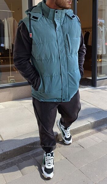 ✨Жилетка прямого силуету з високим коміром і знімним капюшоном.Застібка-блискавка та кнопки,спереду нагрудна й бокові кишені.