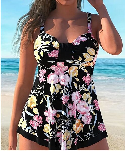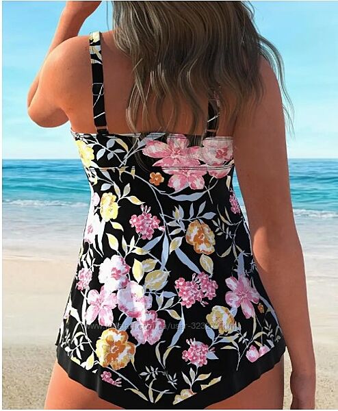 Вигідна пропозиція.Танкіні з квітковим принтом, різнокольоровий.Заміри у вільному стані: