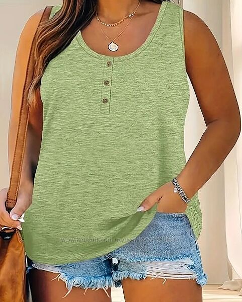 Нові жіночі топи для повсякденного використання на гудзиках без рукавів, однотонні (кольори - сірий, зелена трава), еластичний та приємний до тіла матеріал, круглий виріз,Заміри по виробу у вільному стані: