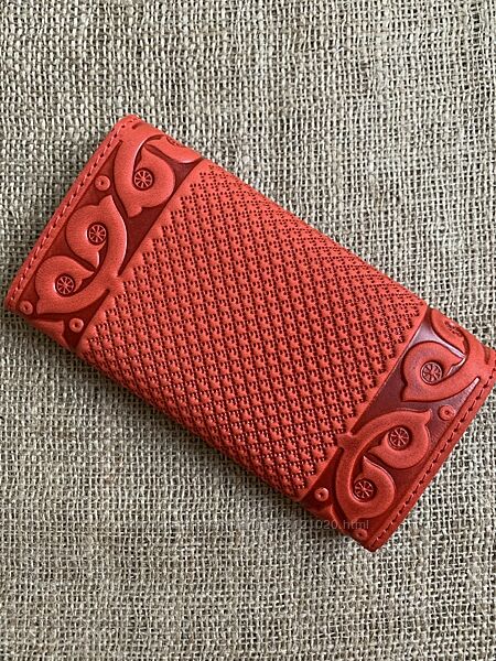 Шкіряний жіночий гаманець з тисненням. Виготовлений з натуральної шкіри, на поверхню якого нанесено рельєфний, обʼємний орнамент шляхом пресування (тиснення). Тиснення надає гаманцю вишуканості та оригінальності в дизайні.Такий гаманець може бути не лише функціональним аксесуаром, а й чудовим подарунком, що підкреслить індивідуальність його власника.