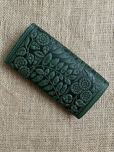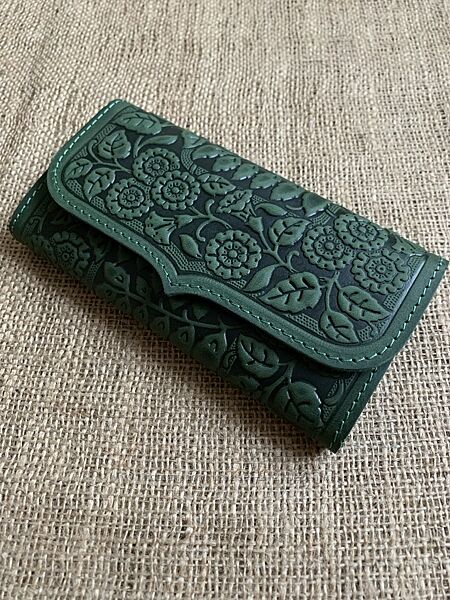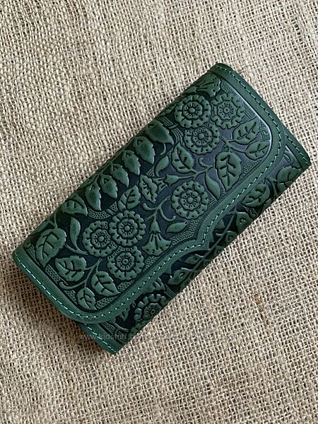 Шкіряний жіночий гаманець з тисненням. Виготовлений з натуральної шкіри, на поверхню якого нанесено рельєфний, обʼємний орнамент шляхом пресування (тиснення). Тиснення надає гаманцю вишуканості та оригінальності в дизайні.Такий гаманець може бути не лише функціональним аксесуаром, а й чудовим подарунком, що підкреслить індивідуальність його власника.
