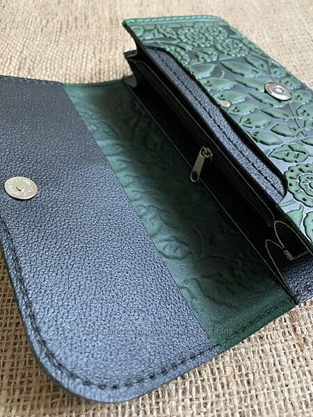 Подробное описание: Гаманець шкіряний зелений жіночий