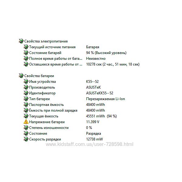 Характеристики батареи Литий-ионная, 6-ячеечная