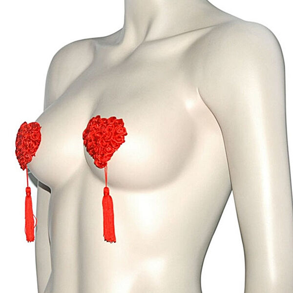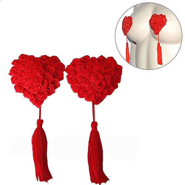 Червоні стикіні наклейки на груди серця з трояндами для інтимних ігор
