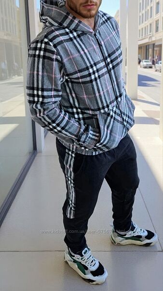 Кофта на блискавці з капюшоном,накладними кишенями та еластичною резинкою по низу.Штани з манжетами,бічними кишенями та шнурком для зручного регулювання талії.