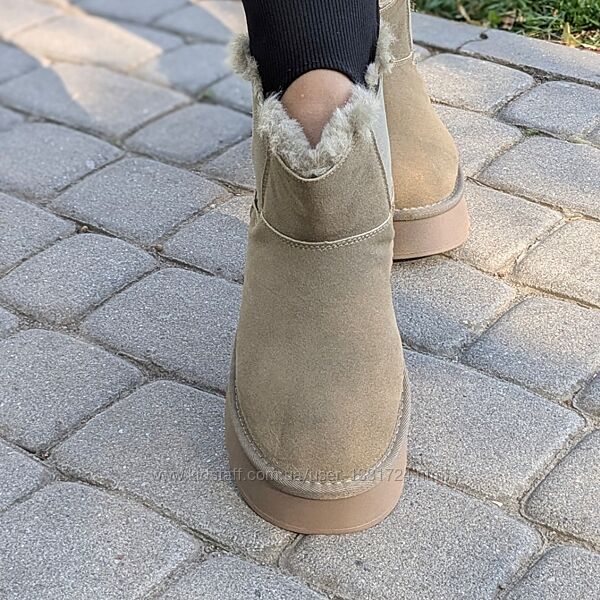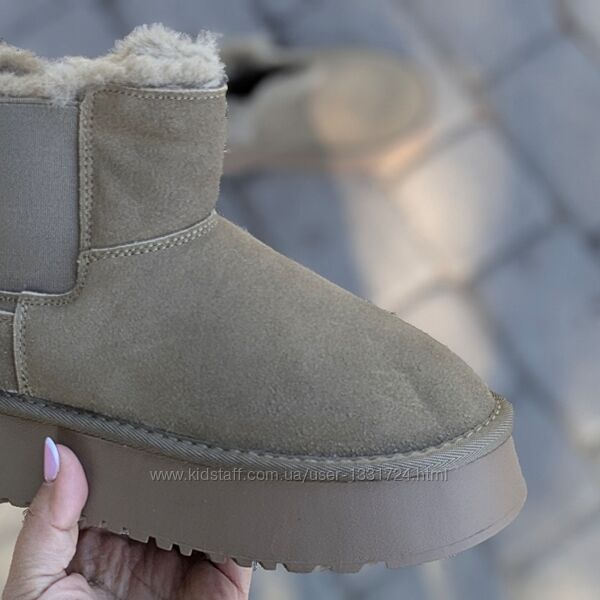 Подробное описание: Уги натуральна замша натуральне хутро на високій підошві колір мокко