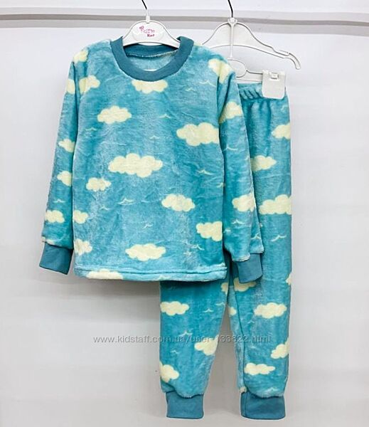 Піжама дитяча для хлопчика і дівчинки (кофта з довгим рукавом, під приклад, низ розпошив, горловина так само приклад + штани на гумці, низ під приклад), дуже тепла м´яка до тіла піжамка, в холодну пору ідеальний варіант, підійде діткам від 3-4 років до 7-8 років.Пошита з синтетичної (поліестер) тканини вельсофт, але вона безпечна, гігієнічна та гіпоалергенна, тому це дає можливість виготовляти з неї текстиль для вагітних і годуючих мам, для новонароджених дітей, для людей-алергіків, легка і при цьому тепла (тканина швидко нагрівається від температури тіла, а надалі) багаторазовому пранню, матеріал має гарну повітропроникність завдяки пористій структурі.