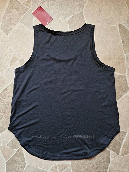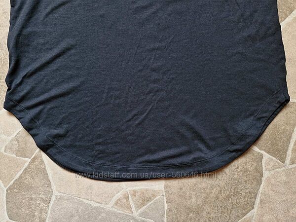 Відмінна якість! Оригінал! Тканина мʼяка, приємна до тіла. Состав: 78% полієстер, 17% ліосел, 5% еластан. Вільний крій. Низ фігурний. Логотип попереду у вигляді круглої печатки з зірочками та назвою бренду. Виробництво Бангладеш. Вказано розмір М, обов’язково дивіться виміри в спокійному стані. НапівОГ 48, НапівОТ 50,напівобхват внизу 53, плече 4, довжина 62,довжина бокового шва 30 см. Колір чорний. Без дефектів.